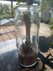 Afgelopen dagen hadden we ons afrondende gesprek. Na alle online sessies hadden we nu op locatie afgesproken. Ze zag er stralend uit. Naast de koffie met iets lekkers erbij, had ze ook een cadeautje voor me meegenomen. Een plantje in een glazen fles. Ze gaf er ook een brief bij. Deze wil ik graag voor een deel met je delen.